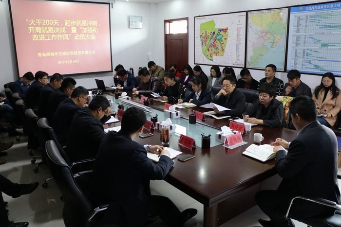 本報訊 3月18日,青島西海岸交通投資建設有限公司召開“大干200天,起步就是沖刺,開局就是決戰”暨“加強和改進工作作風”動員大會,深入學習貫徹全區“項目落實年”、“改革創新年”和“作風建設年”活動精神,深化作風建設,推進項目落實,高標準、高效率、高水平推進青島西客站規劃建設。